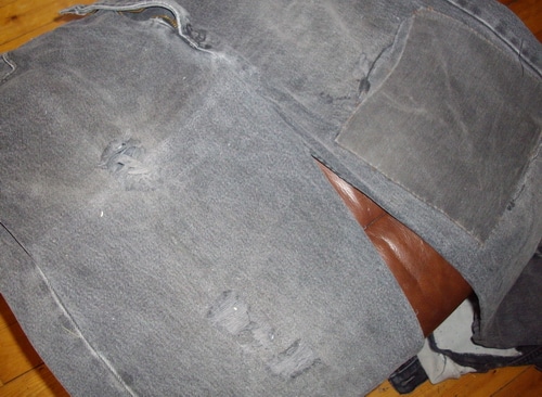 Denim from worn jeans: Cut into 1/2 to 3/4 inch strips