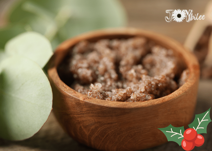 You can make additional variations of the gingerbread sugar scrub by subbing in different ingredients. You can substitute in 1/3rd of a cup coconut oil, for the olive oil, simply make sure it’s fractionated coconut oil so that it doesn’t harden at room temperature.