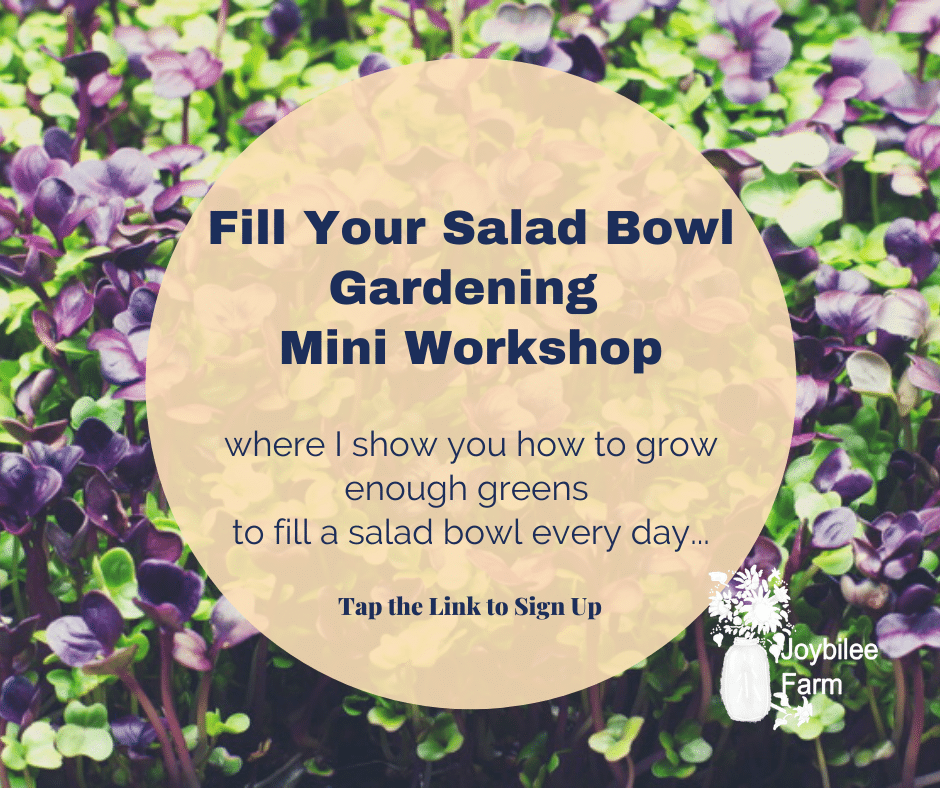 Check out the Fill Your Salad Bowl workshop and learn how to use 3 different growing methods, at home, so you can fill your salad bowl with super food, nutrient dense, greens every single day. Like broccoli sprouts, these are greens you can use in your salad bowl, greens you can add to soups, stews, and pasta dishes, and even greens you can use in a stir fry.