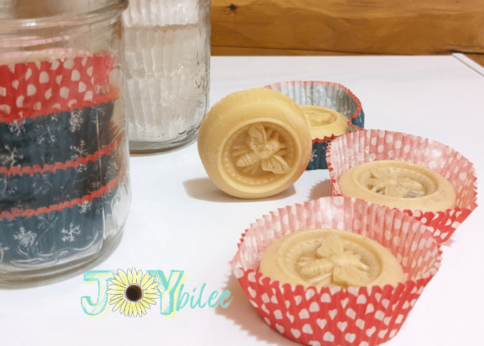 - Pour into 2 ounce molds, silicon soap molds or candy molds work well. You can also use smaller molds, which will give you more bars.